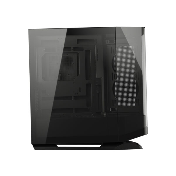 Многогранный периметр средней башни FV270 в форме призмы, выполненный из закаленного изогнутого стекла, обеспечивает непревзойденный панорамный вид на внутреннюю часть вашей сборки во всей ее красе, а инновационное расположение охлаждающих вентиляторов под углом революционизирует динамику воздушного потока.